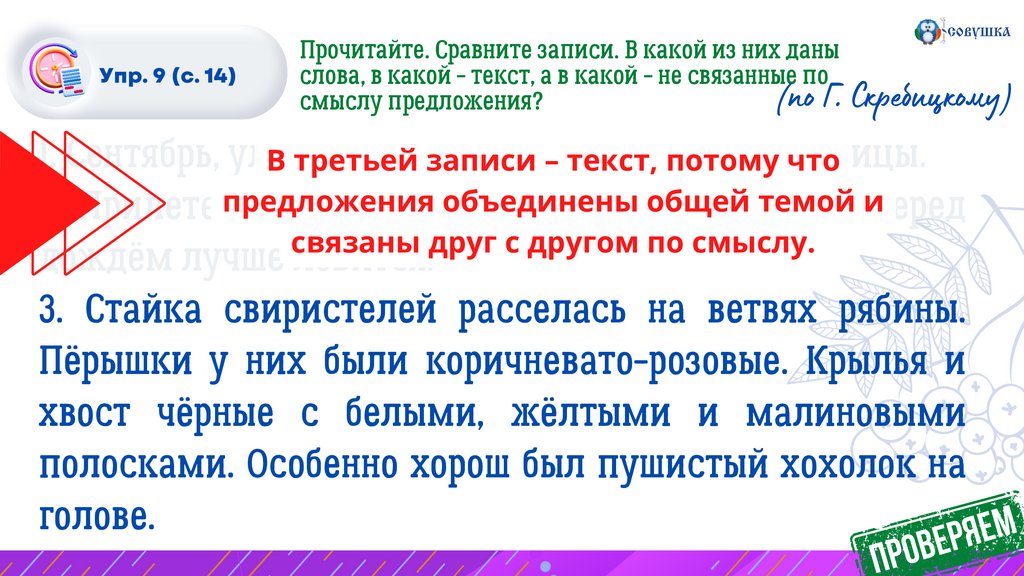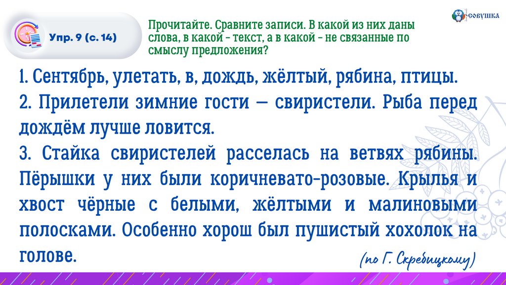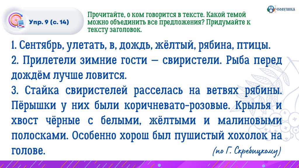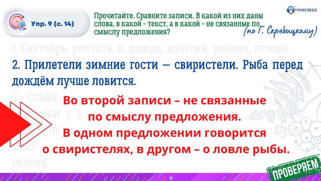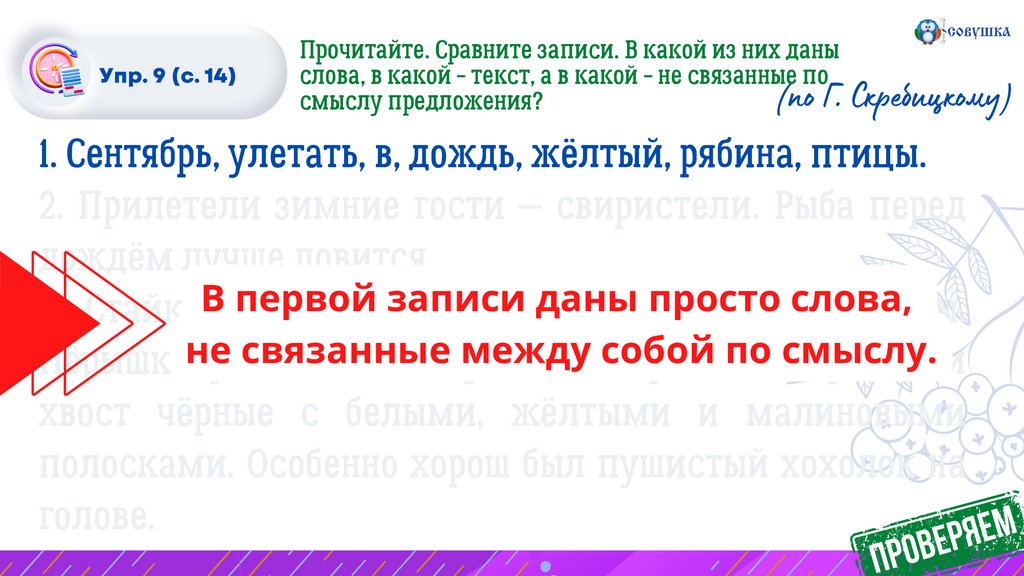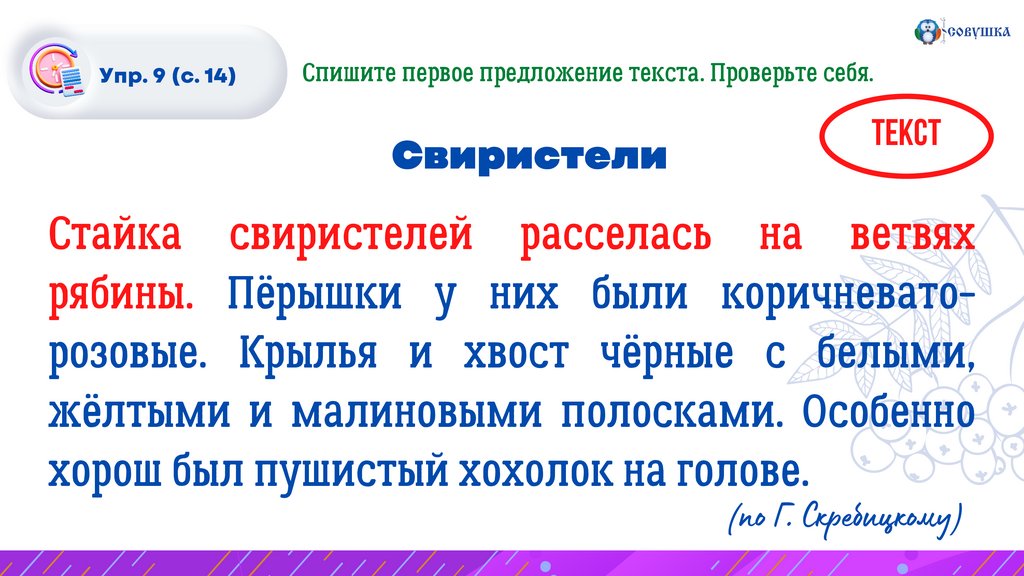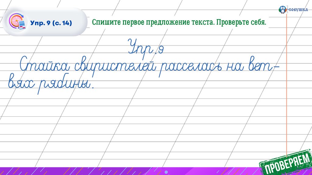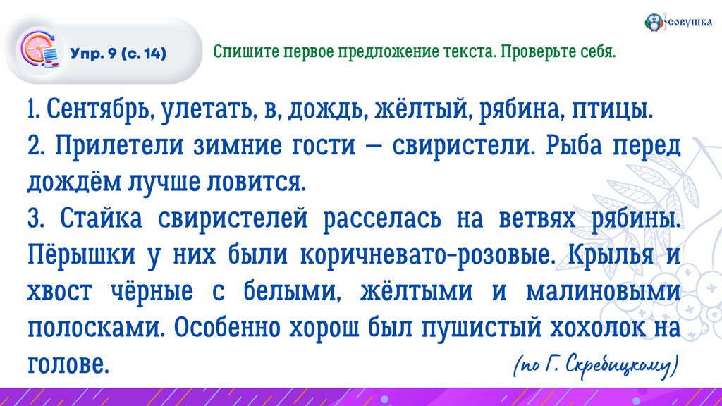 Упр. 9 (с. 14)Спишите первое предложение текста. Проверьте себя.