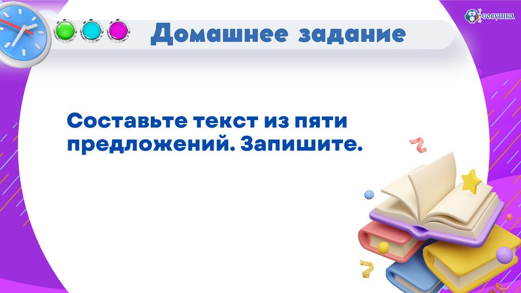 Домашнее заданиеСоставьте текст из пяти