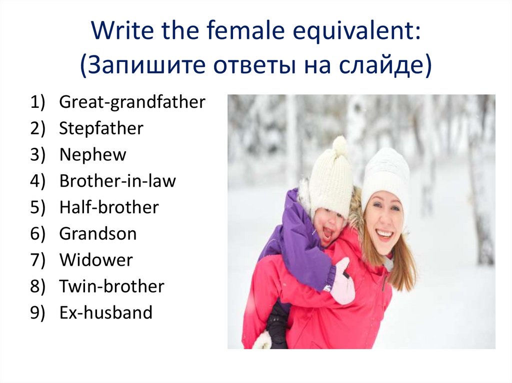 Write the female equivalent:(Запишите ответы на слайде)