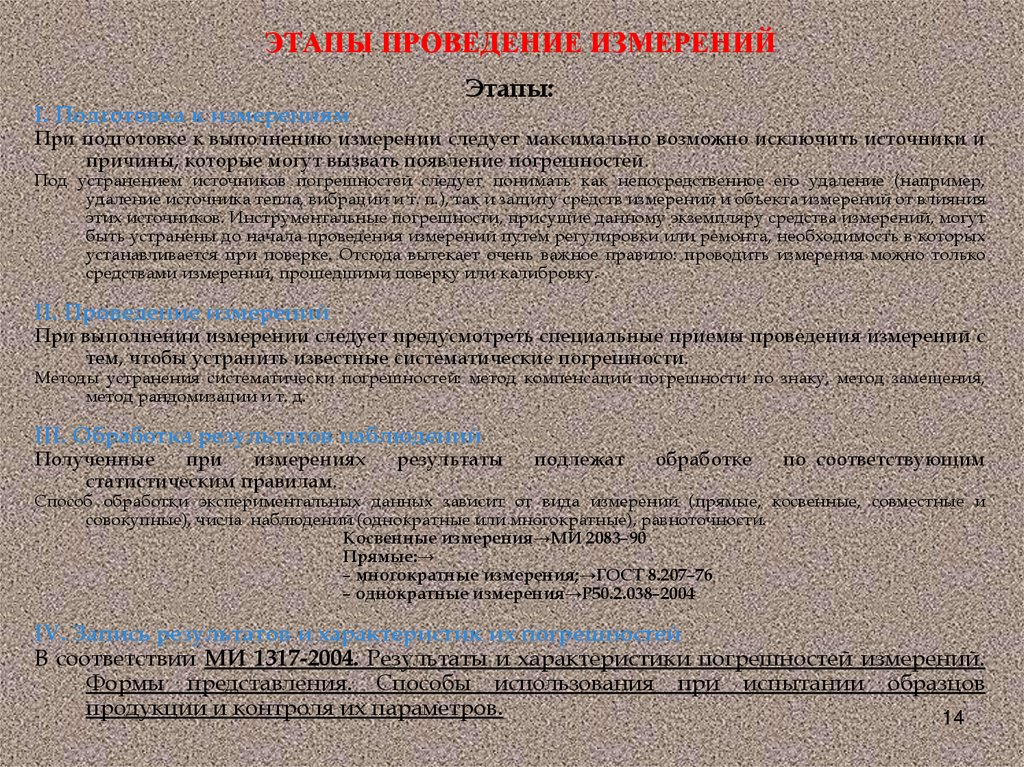 ЭТАПЫ ПРОВЕДЕНИЕ ИЗМЕРЕНИЙI. Подготовка к измерениям