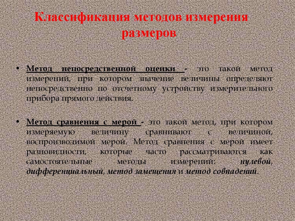 1. Классификация методов измерения размеров2. Метрологические характеристики средств