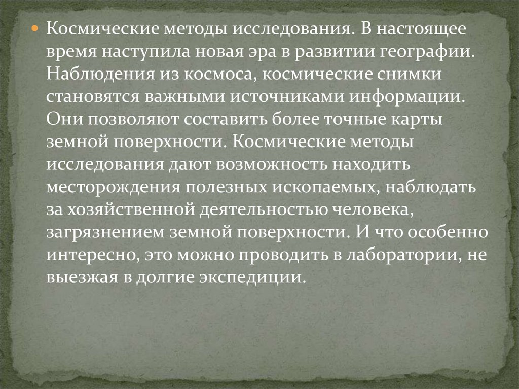 Космические методы исследования. В настоящеевремя наступила новая эра в развитии географии.