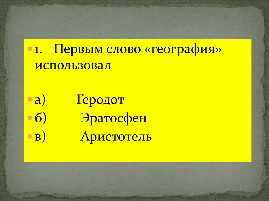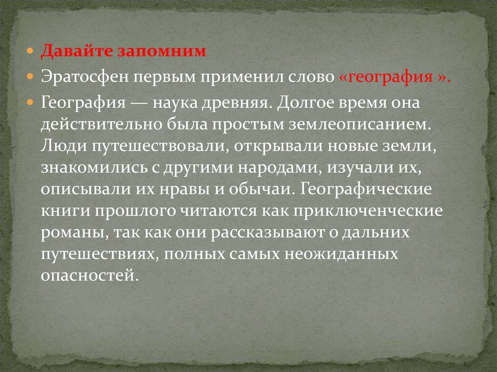 Давайте запомнимЭратосфен первым применил слово «география ».