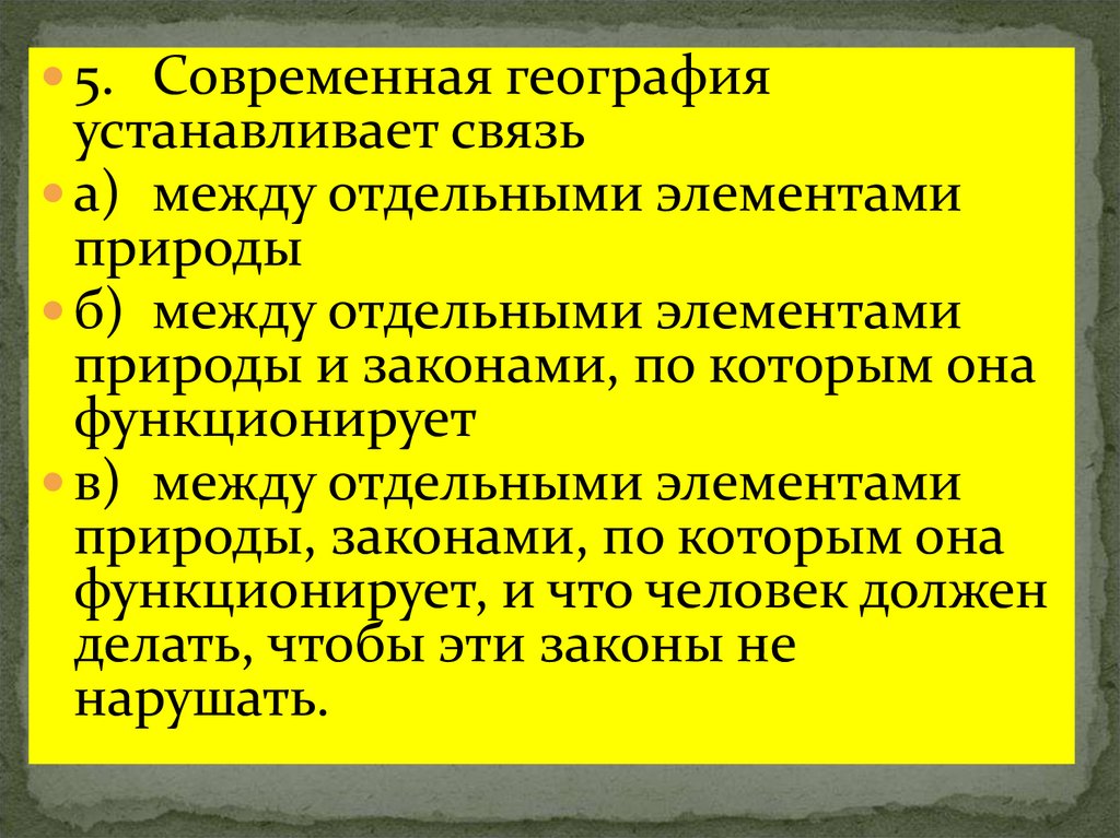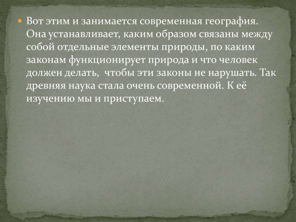 Вот этим и занимается современная география.Она устанавливает, каким образом связаны между