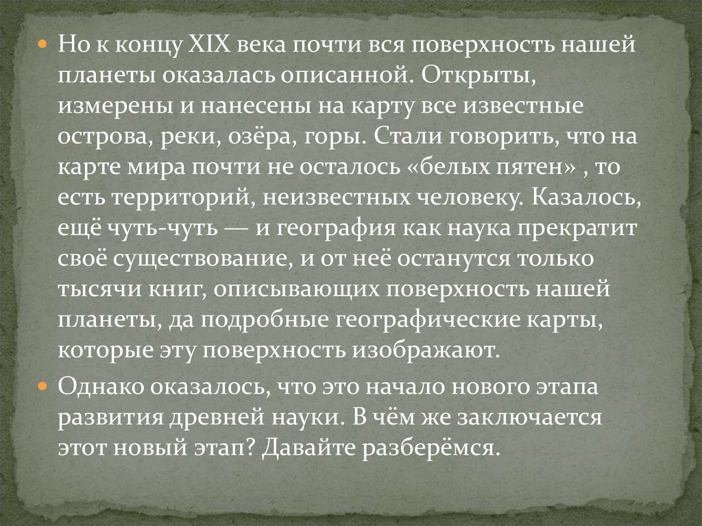 Но к концу XIX века почти вся поверхность нашейпланеты оказалась описанной. Открыты,