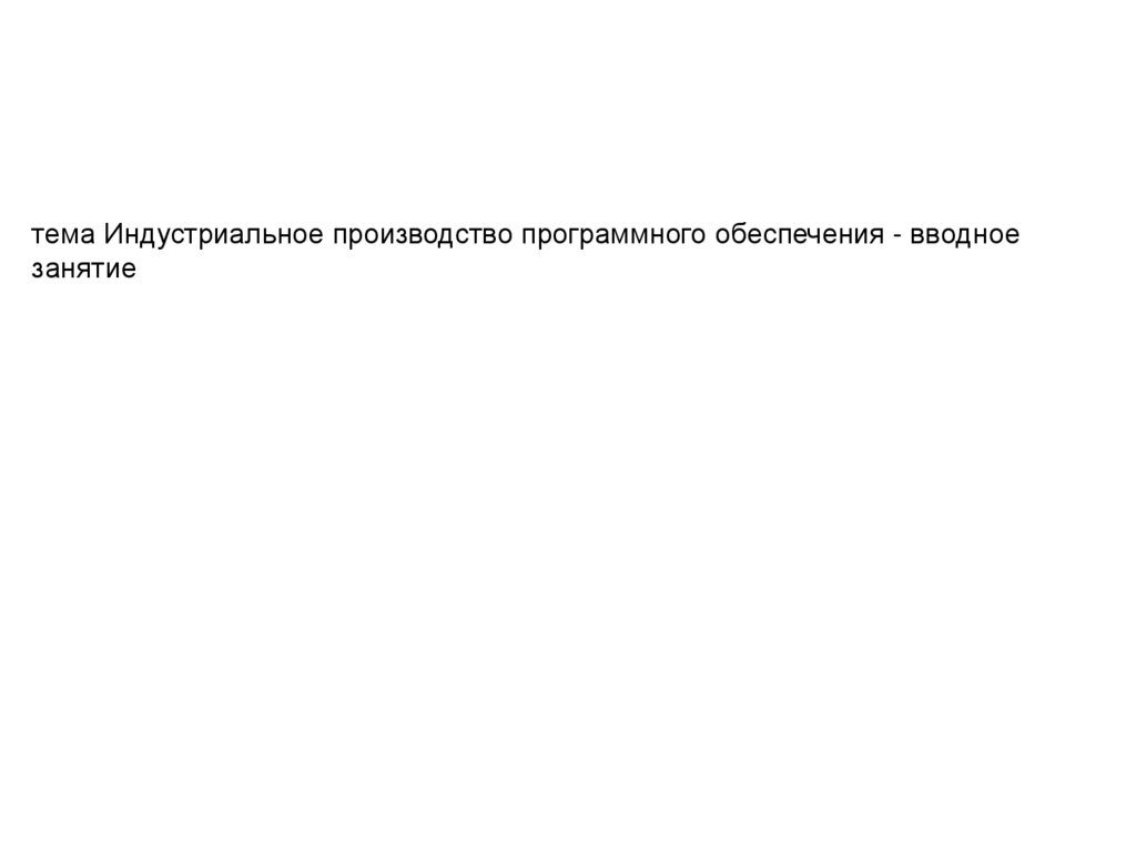 тема Индустриальное производство программного обеспечения - вводноезанятие