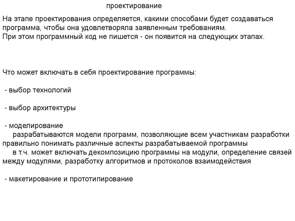 Далее рассмотрим, из каких этапов состоит разработка ПО.