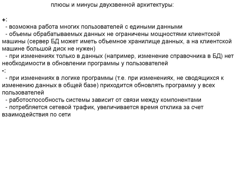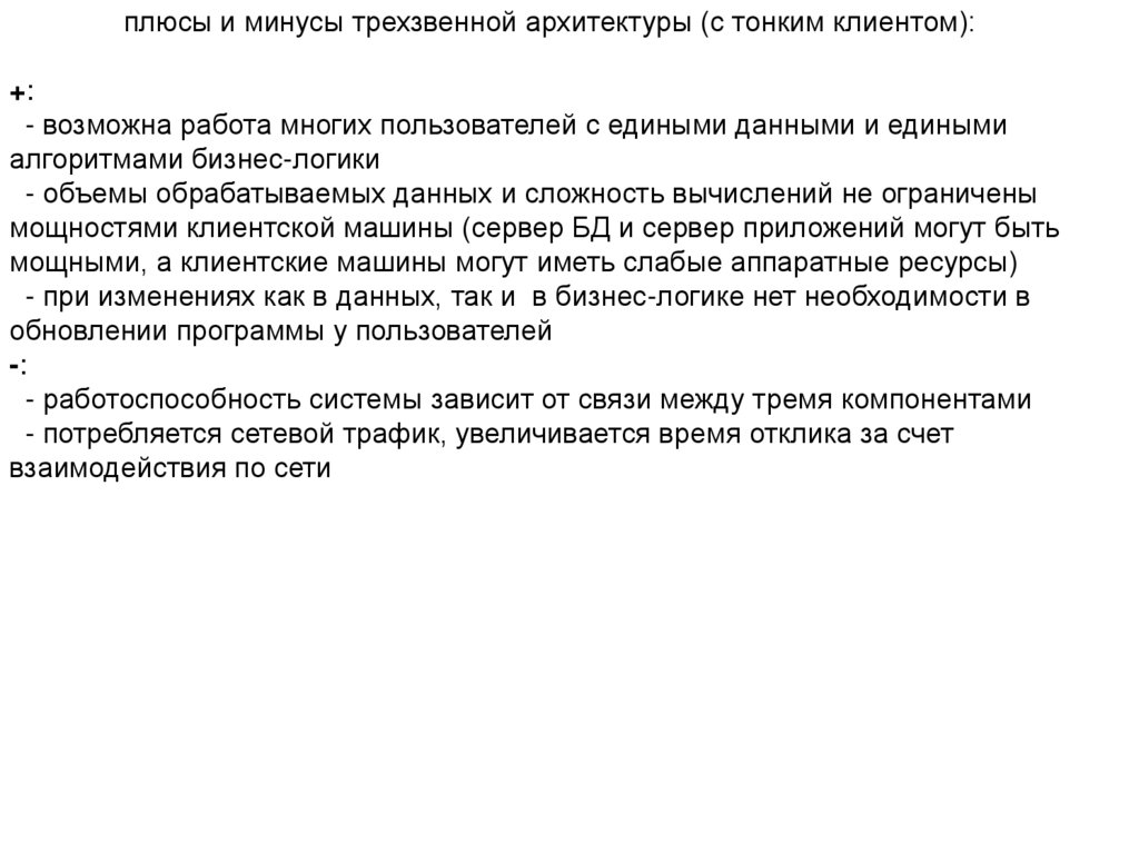 плюсы и минусы трехзвенной архитектуры (с тонким клиентом):+: