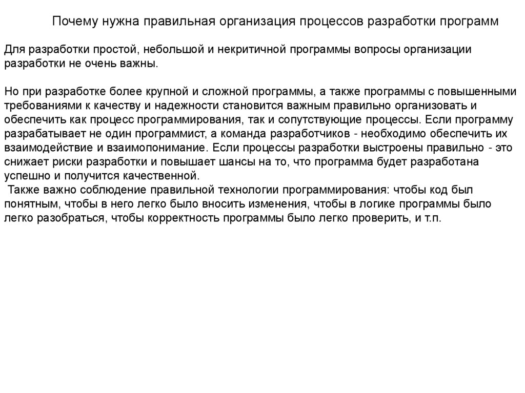 Почему нужна правильная организация процессов разработки программДля разработки простой, небольшой и некритичной программы вопросы организации