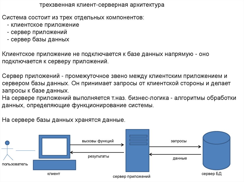 трехзвенная клиент-серверная архитектураСистема состоит из трех отдельных компонентов: