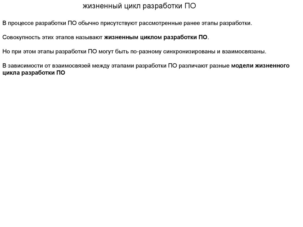 жизненный цикл разработки ПОВ процессе разработки ПО обычно присутствуют рассмотренные ранее этапы разработки.