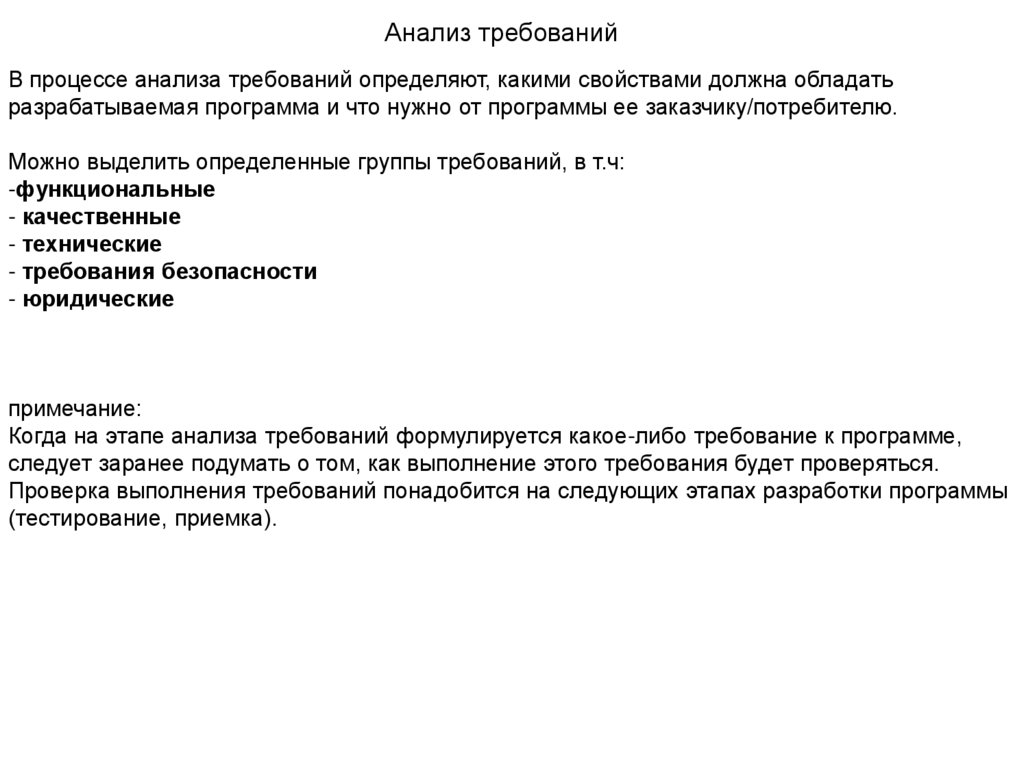 Анализ требованийВ процессе анализа требований определяют, какими свойствами должна обладать