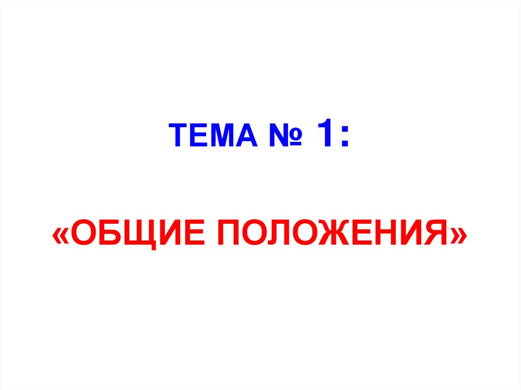 ТЕМА № 1:«ОБЩИЕ ПОЛОЖЕНИЯ»