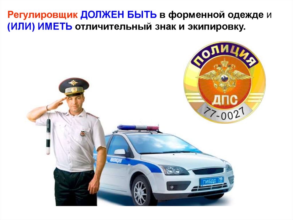 Регулировщик ДОЛЖЕН БЫТЬ в форменной одежде И(ИЛИ) ИМЕТЬ отличительный знак и экипировку.