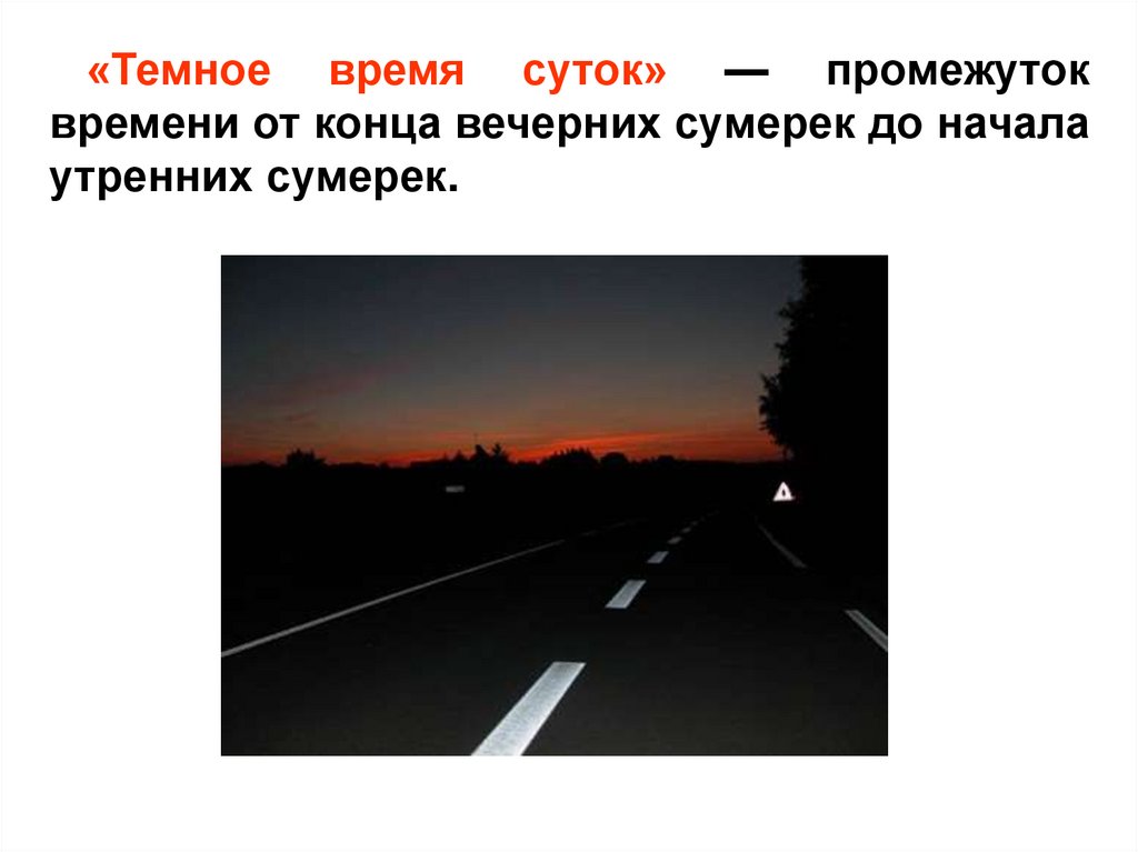 «Темное время суток» — промежутоквремени от конца вечерних сумерек до начала