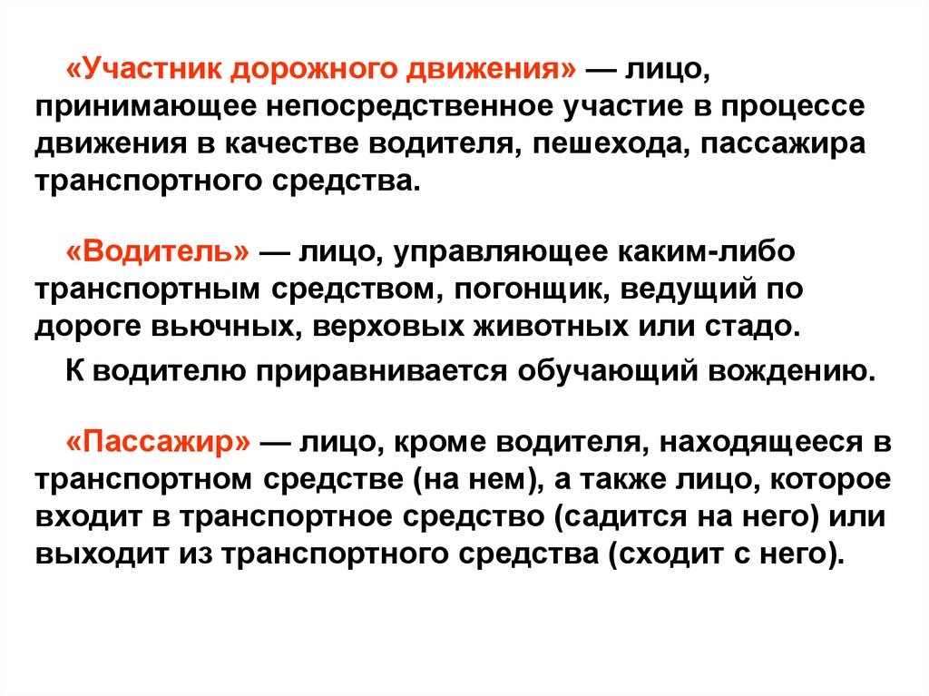 «Участник дорожного движения» — лицо,принимающее непосредственное участие в процессе