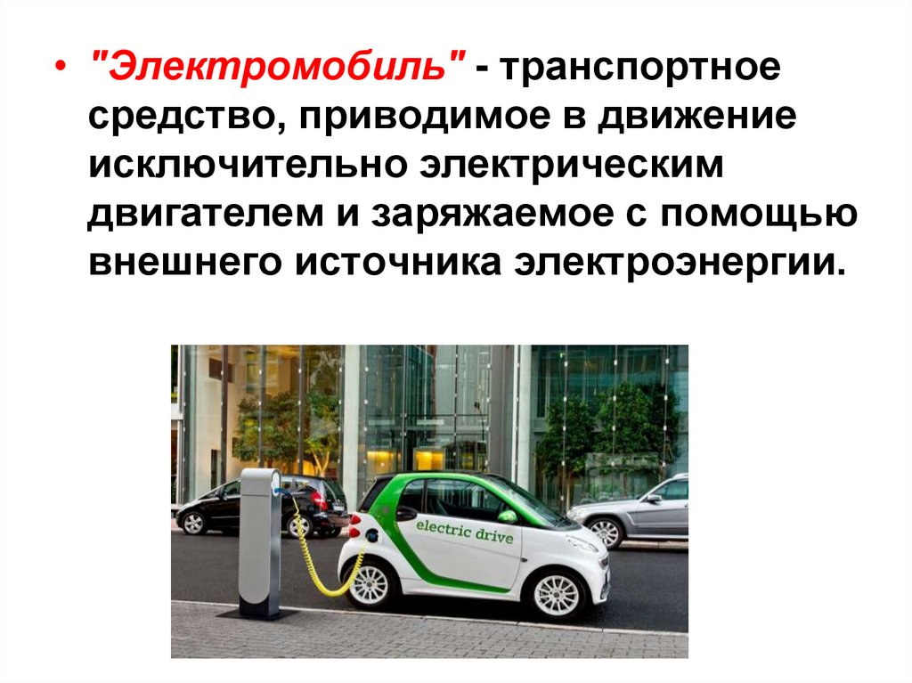 • "Электромобиль" - транспортноесредство, приводимое в движение