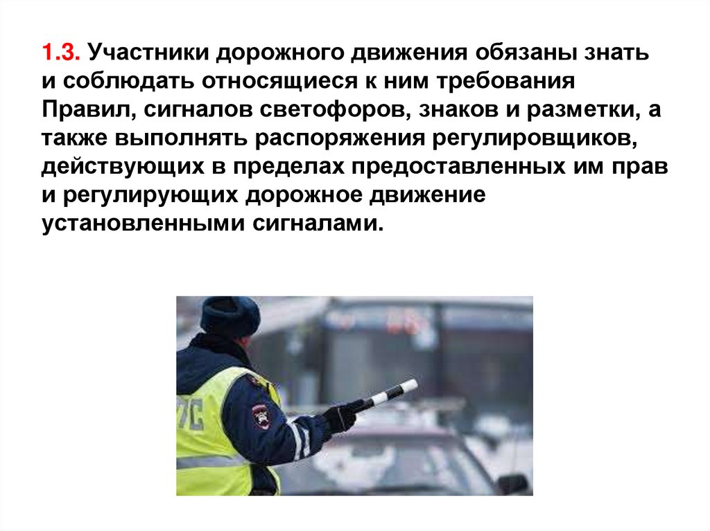 1.3. Участники дорожного движения обязаны знатьи соблюдать относящиеся к ним требования