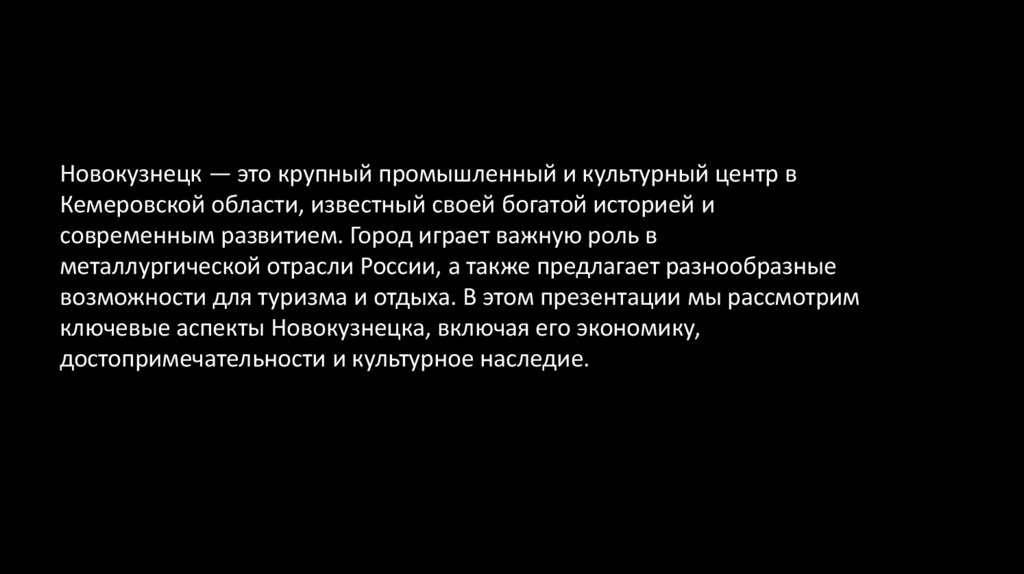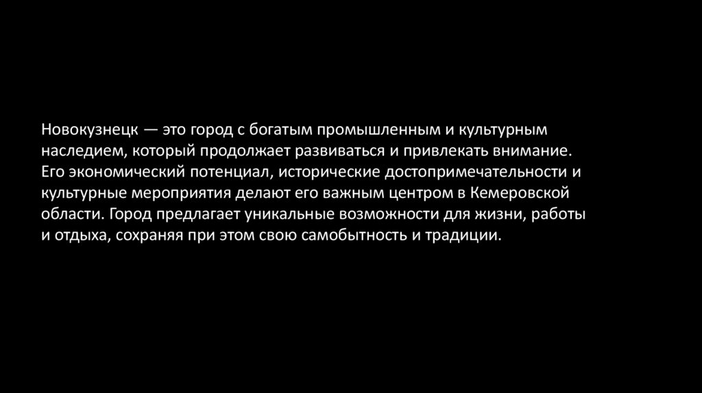 Новокузнецк — это город с богатым промышленным и культурнымнаследием, который продолжает развиваться и привлекать внимание.