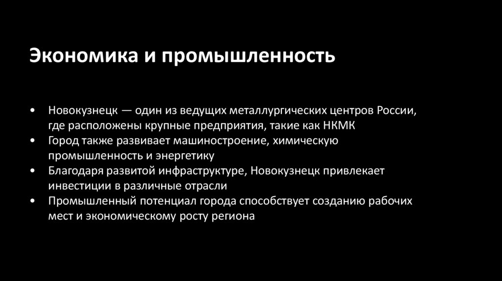 Экономика и промышленностьНовокузнецк — один из ведущих металлургических центров России,