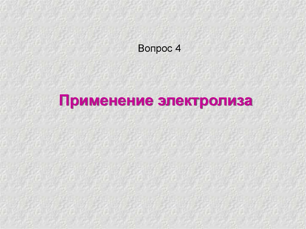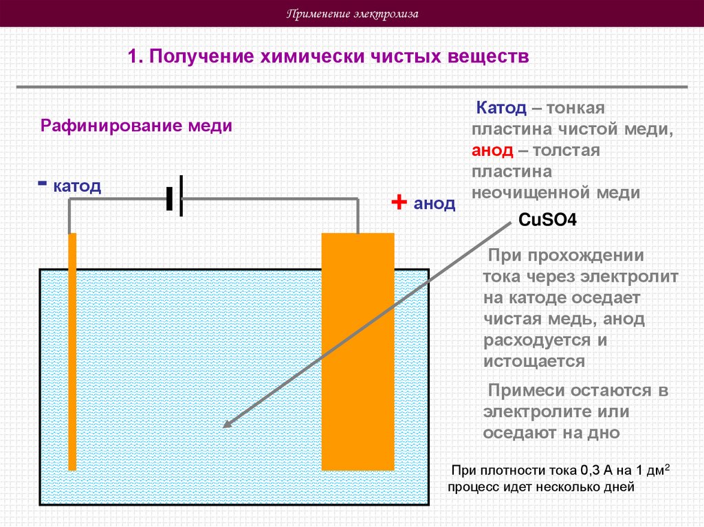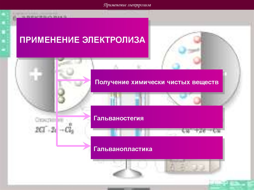 Применение электролизаПРИМЕНЕНИЕ ЭЛЕКТРОЛИЗА