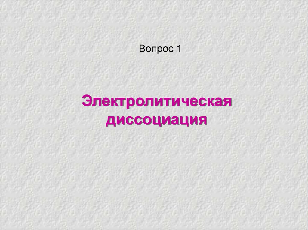 ВОПРОСЫ:1. Электролитическая диссоциация