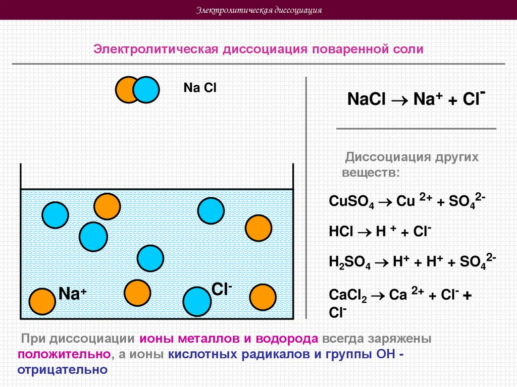 Электролитическая диссоциацияЭлектролитическая диссоциация поваренной соли