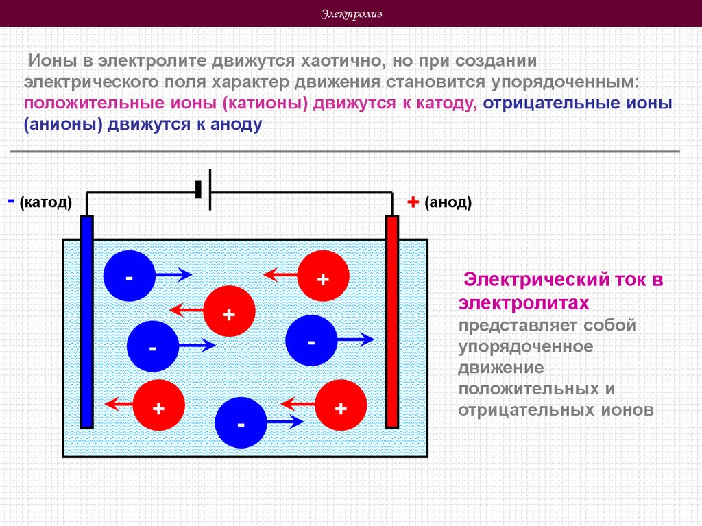 ЭлектролизИоны в электролите движутся хаотично, но при создании