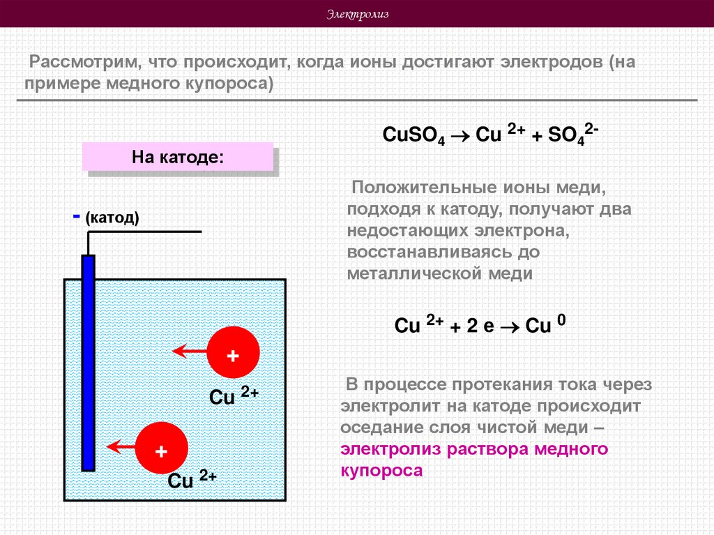 ЭлектролизРассмотрим, что происходит, когда ионы достигают электродов (на