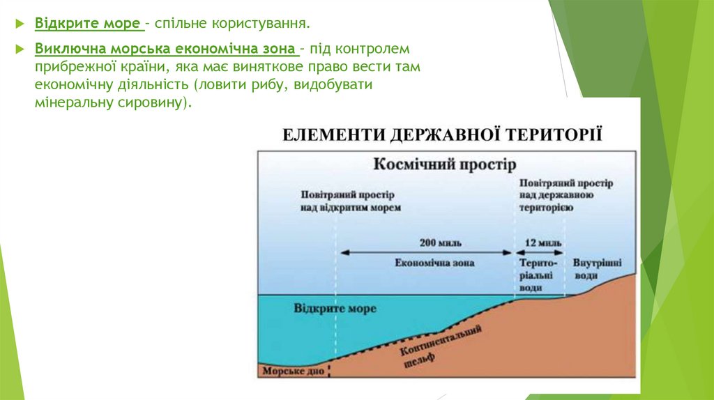 Відкрите море – спільне користування.Виключна морська економічна зона – під контролем