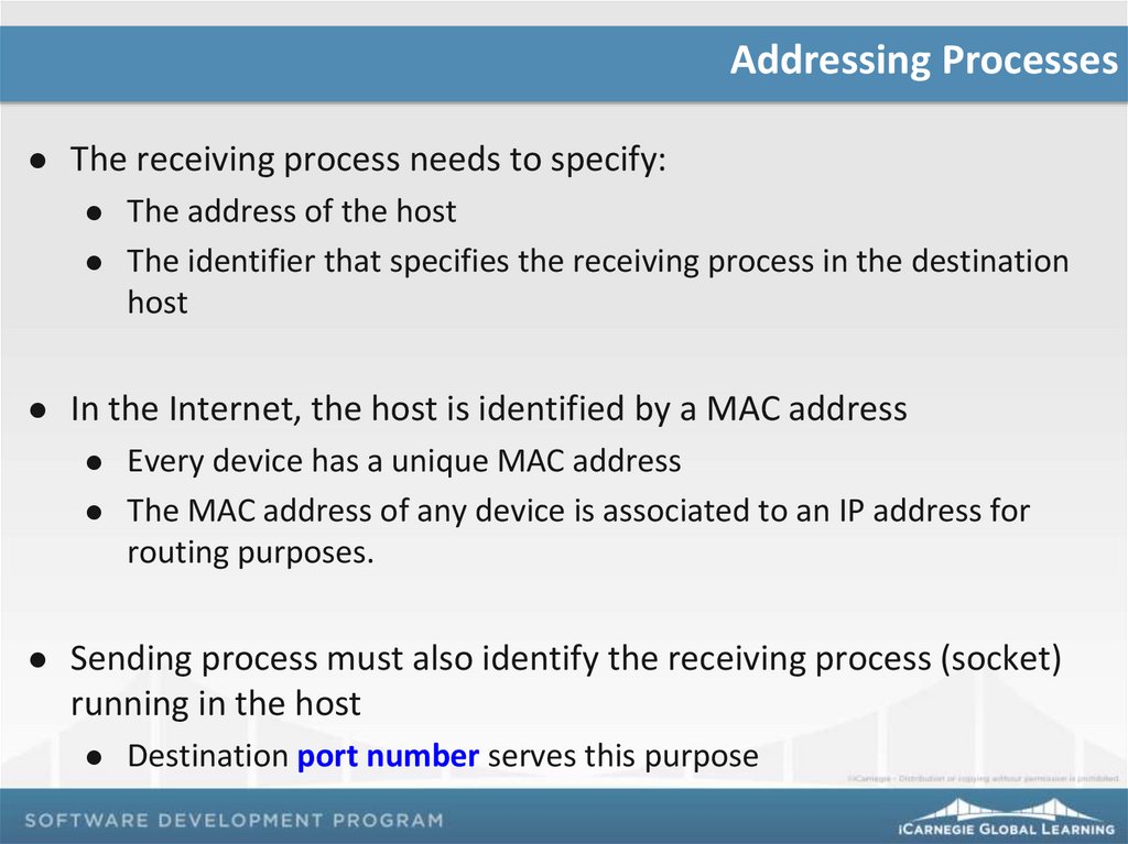 Processes CommunicatingProcesses on two different end systems communicate with each