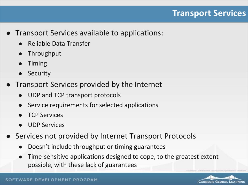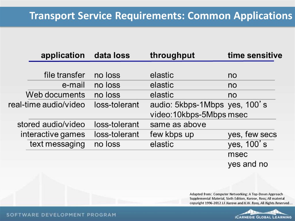 Transport Service Requirements: Common ApplicationsAdapted from: Computer Networking: A Top-Down Approach