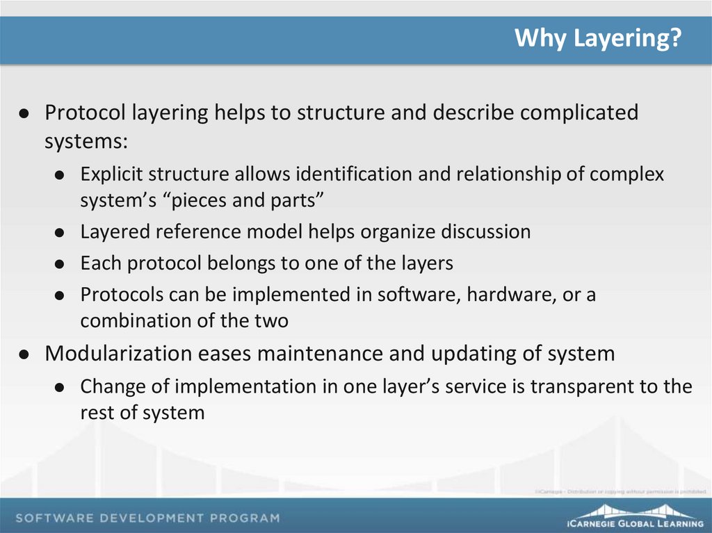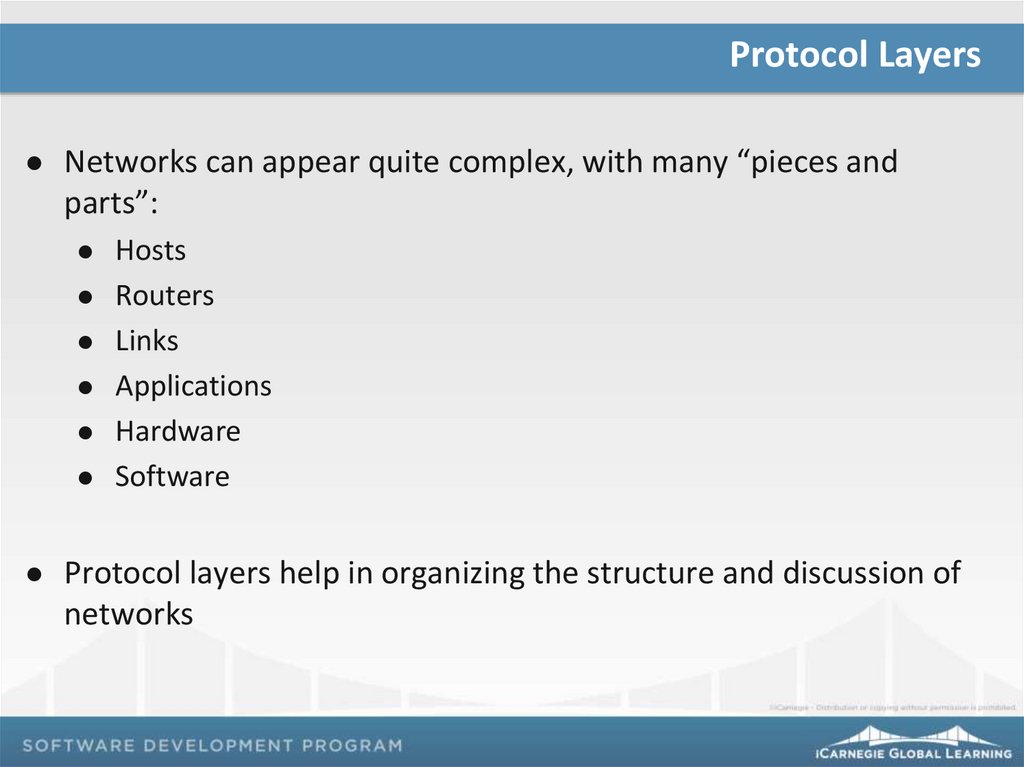 Protocol LayersNetworks can appear quite complex, with many “pieces and