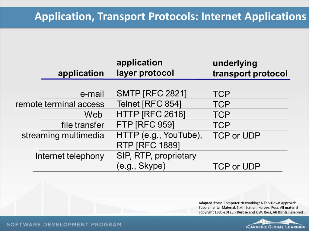 Application, Transport Protocols: Internet ApplicationsAdapted from: Computer Networking: A Top-Down Approach