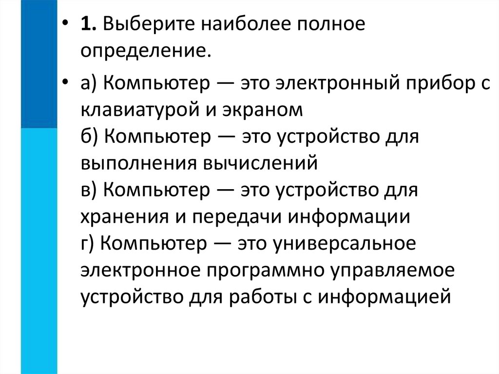 • 1. Выберите наиболее полноеопределение.