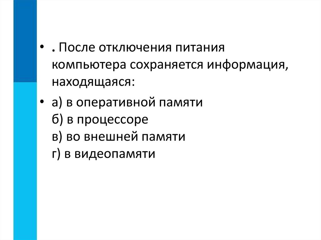• . После отключения питаниякомпьютера сохраняется информация,