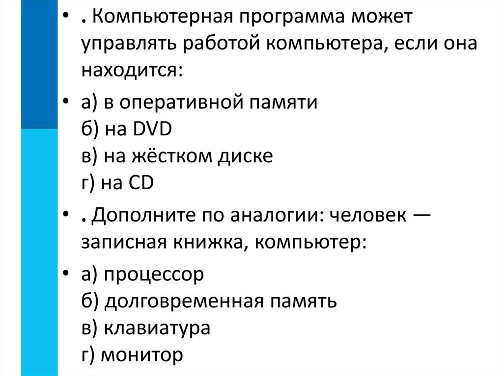 • . Компьютерная программа можетуправлять работой компьютера, если она