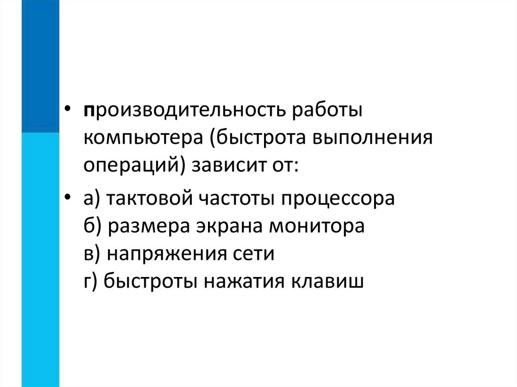 • производительность работыкомпьютера (быстрота выполнения