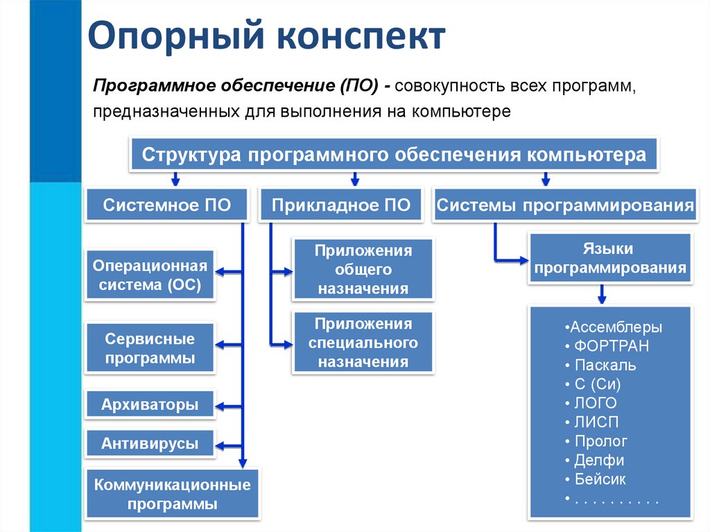 Опорный конспектПрограммное обеспечение (ПО) - совокупность всех программ,