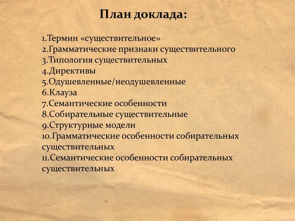 План доклада:1.Термин «существительное»