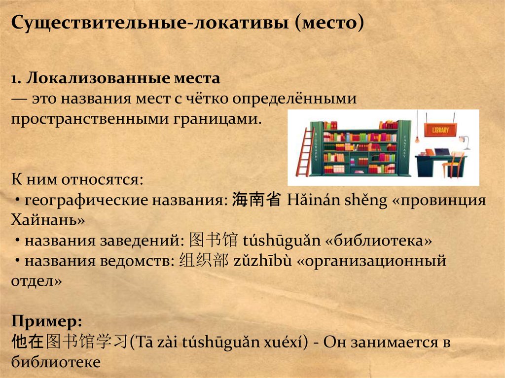 Существительные-локативы (место)1. Локализованные места