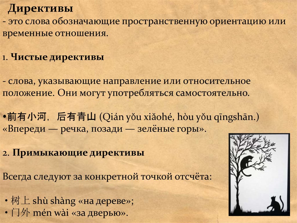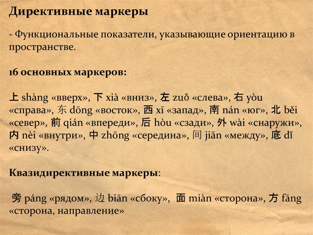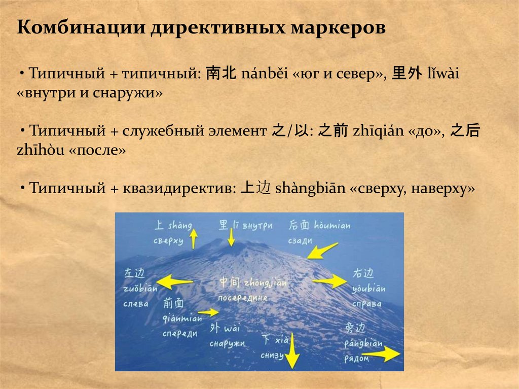 Комбинации директивных маркеров• Типичный + типичный: 南北 nánběi «юг и север», 里外 lǐwài