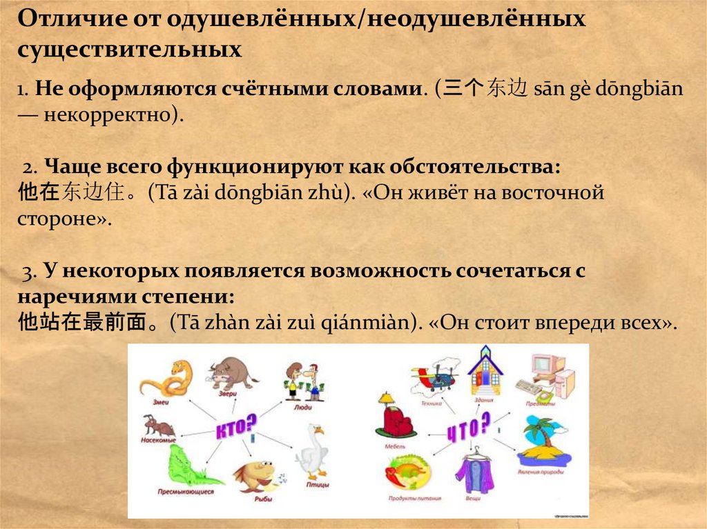Отличие от одушевлённых/неодушевлённыхсуществительных
