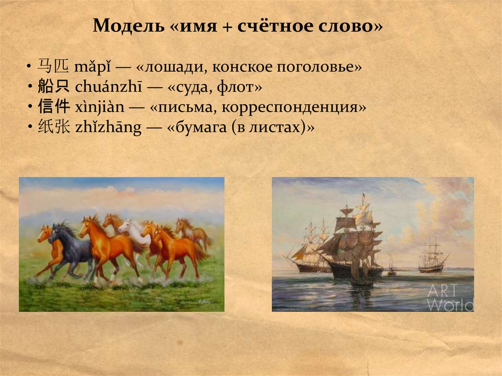 Модель «имя + счётное слово»• 马匹 mǎpǐ — «лошади, конское поголовье»