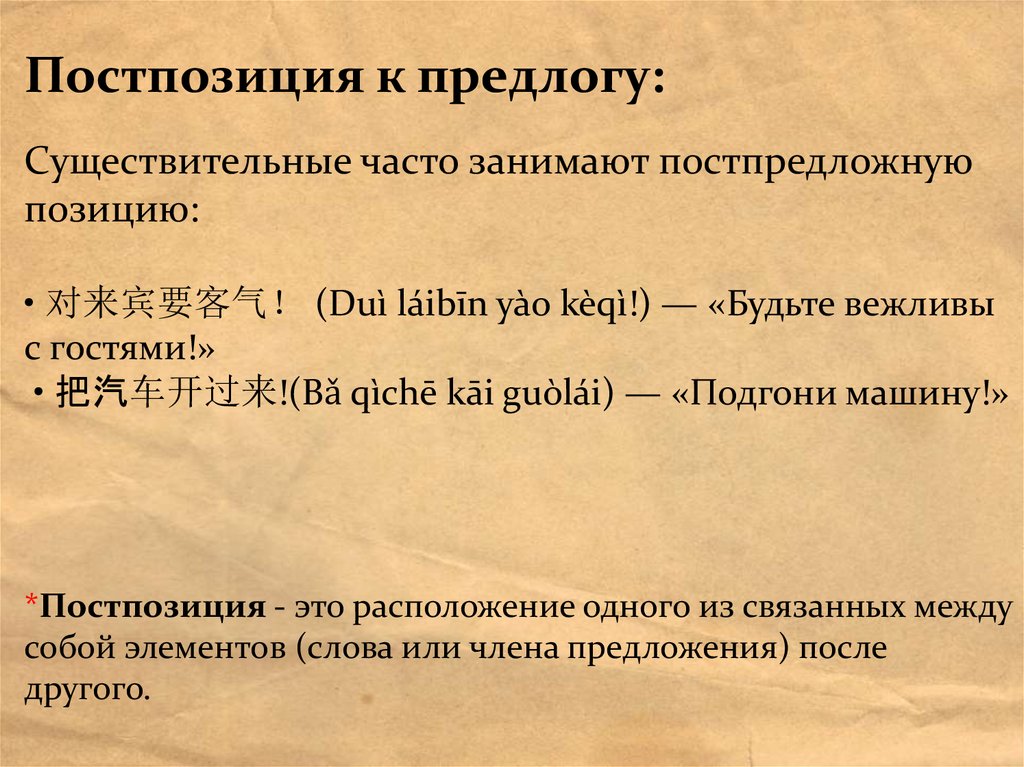 *Постпозиция - это расположение одного из связанных между