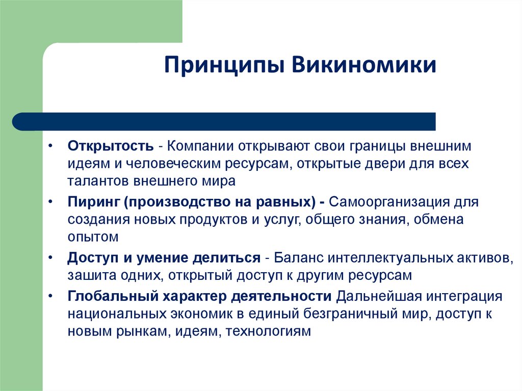 Принципы Викиномики• Открытость - Компании открывают свои границы внешним