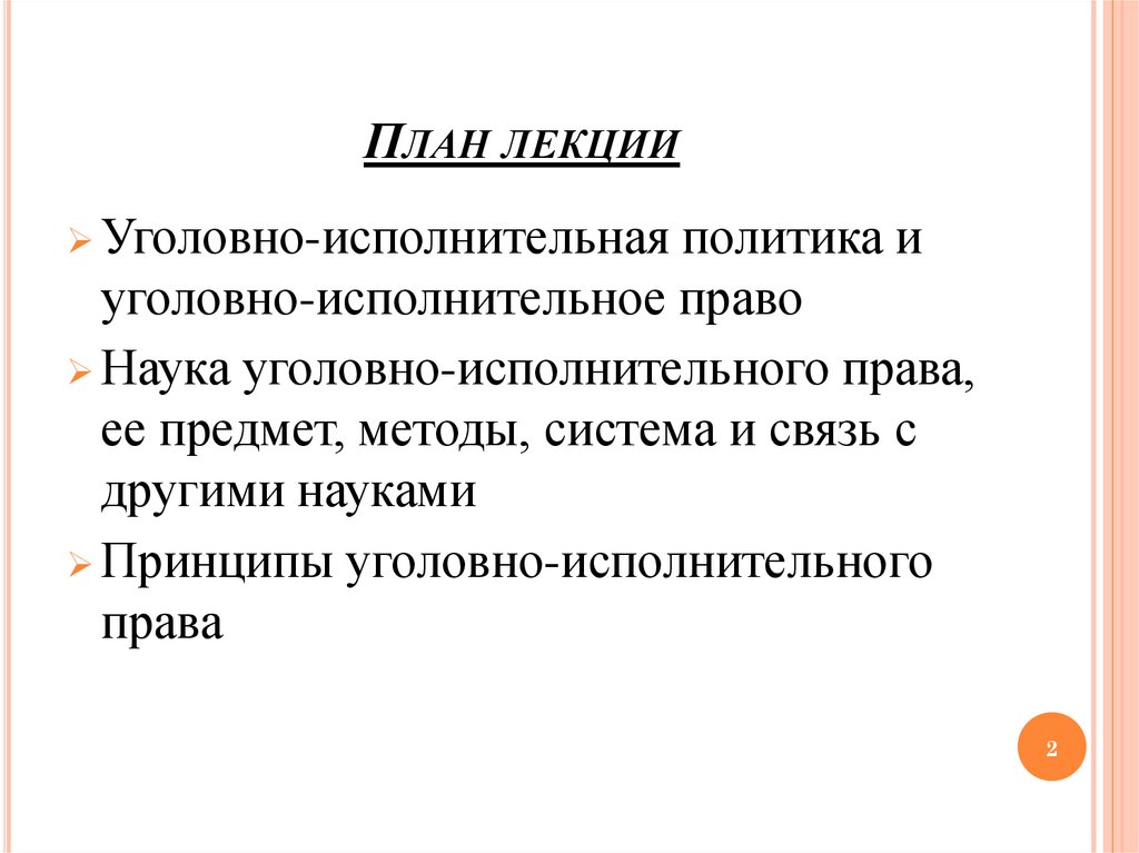ПЛАН ЛЕКЦИИУголовно-исполнительная политика и