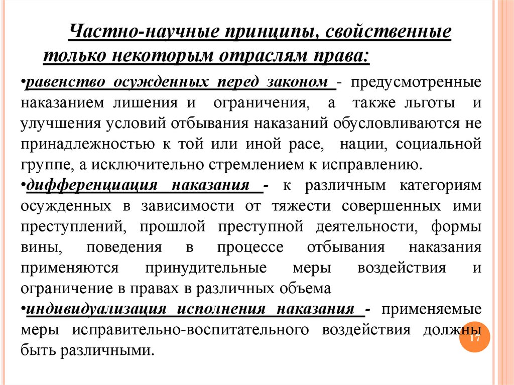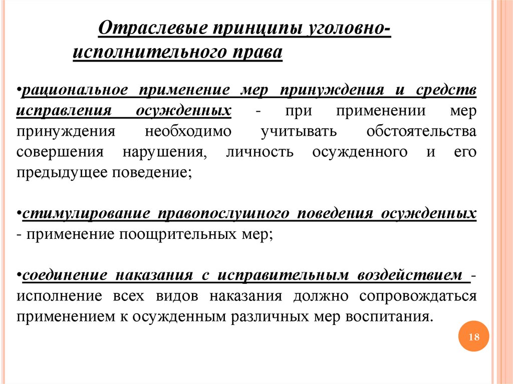 Отраслевые принципы уголовноисполнительного права•рациональное применение мер принуждения и средств