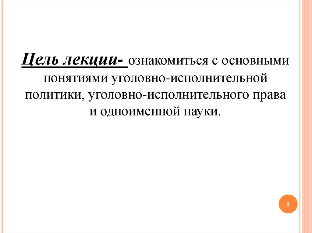 Цель лекции- ознакомиться с основнымипонятиями уголовно-исполнительной