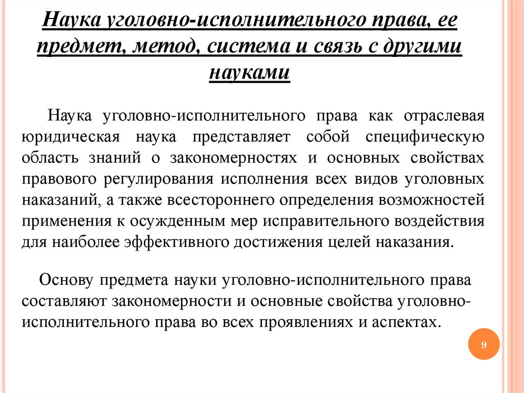 Наука уголовно-исполнительного права, еепредмет, метод, система и связь с другими